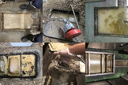 主な対応箇所  飲食店厨房全体、シンク、グリストラップ、排水溝、排水管、定期洗浄